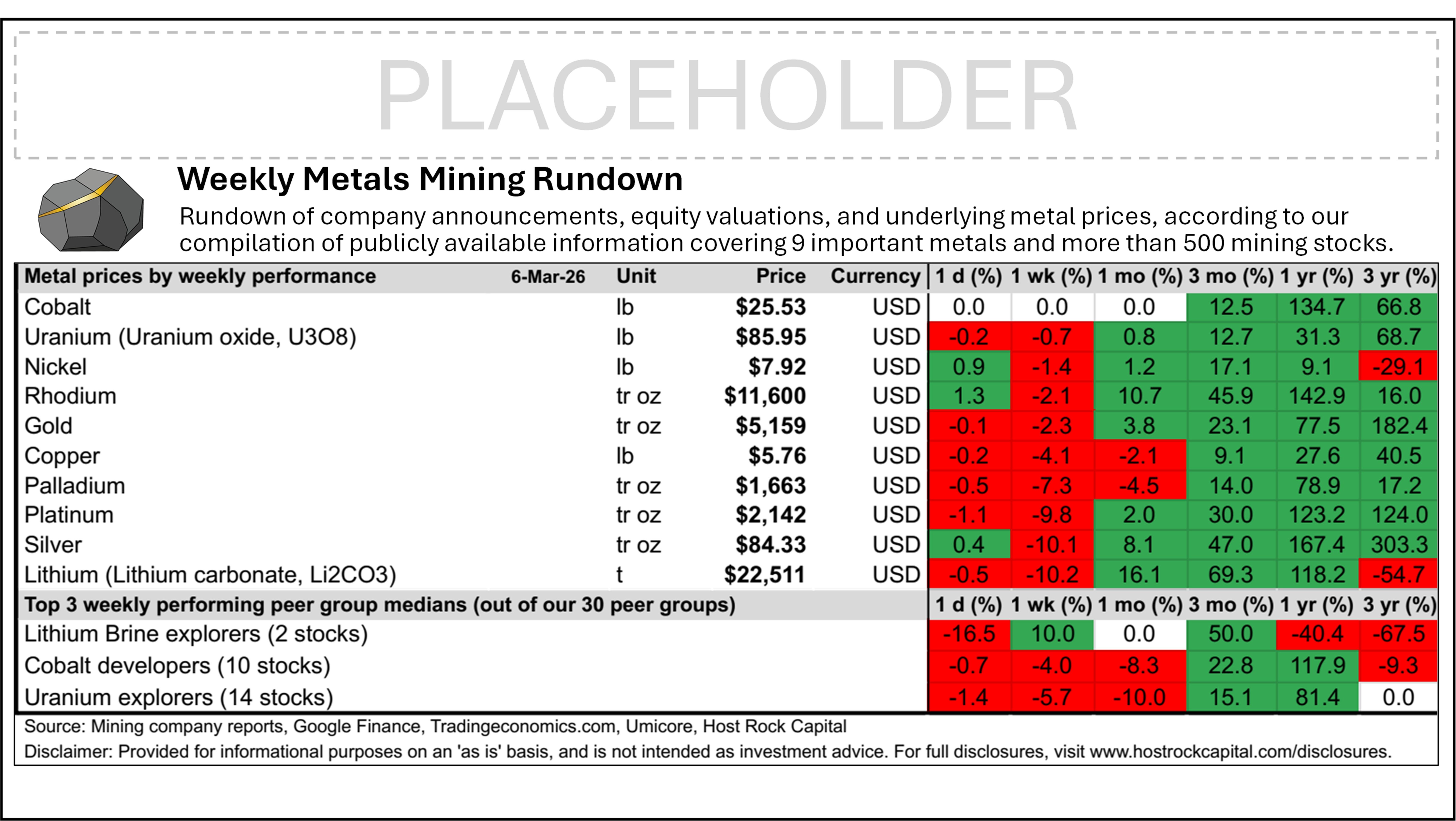 Weekly Metals Mining Rundown with Peer Table - Premium Edition for Week Ending 6 Mar 2026